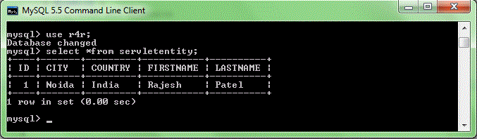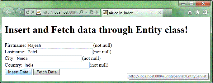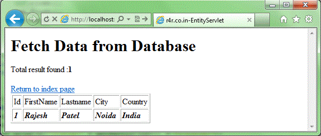 In this Servlet application, an Entity class which is part of Java Persistence API is accessed for inserting and fetching data through servlet.Consider following steps for create this application